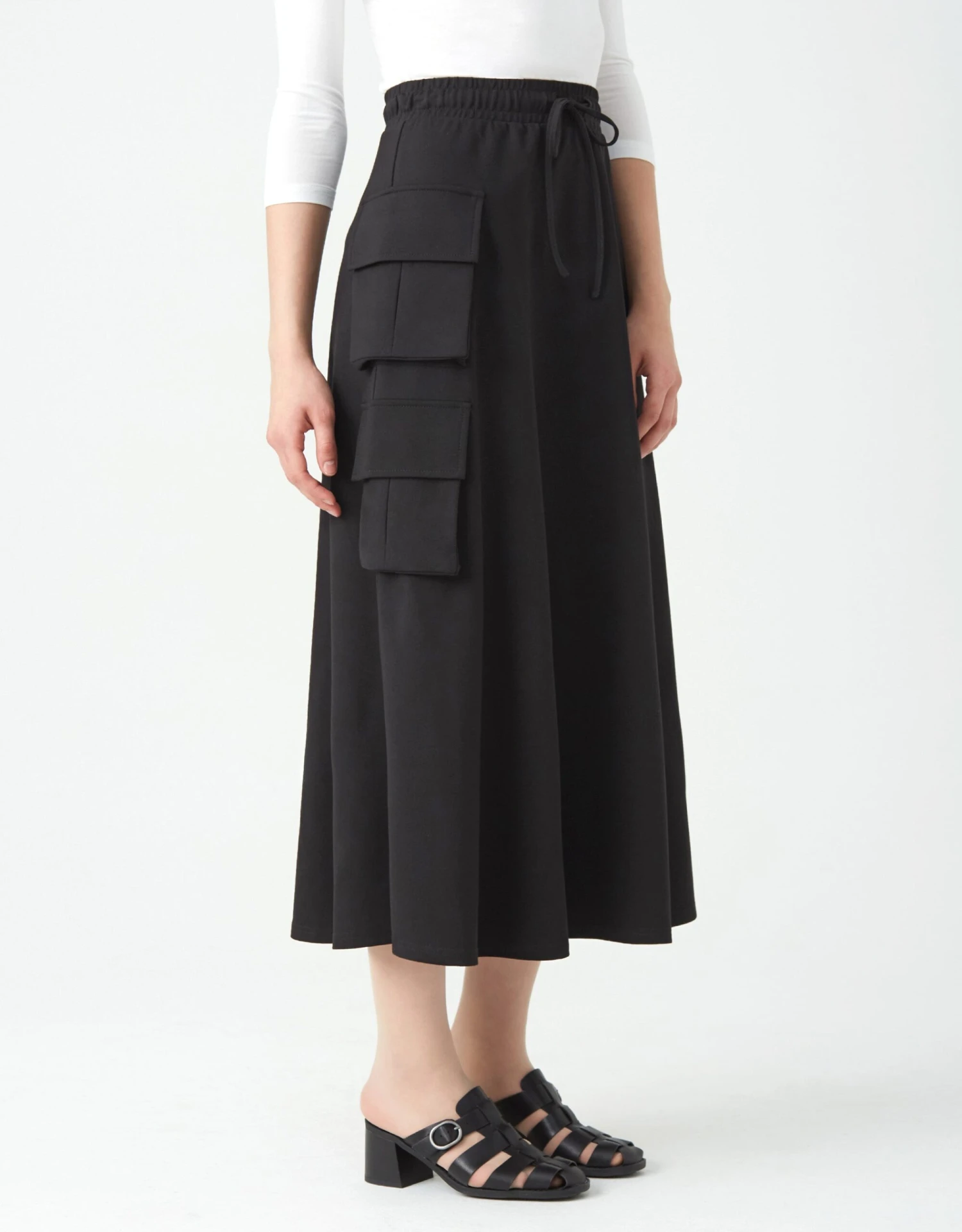 33″ Jersey Multi Pocket Aline Skirt With Drawstring Waist Black
