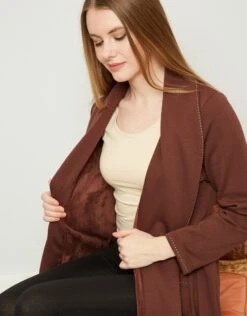 Plush Lined Belted Wrap Robe With Trapunto Stitching Warm Brunette