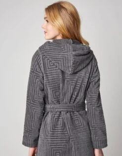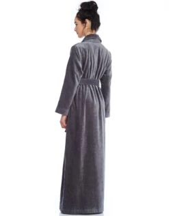 Cinderella Terry Wrap Long Belted Bathrobe With Piped Trim Gray