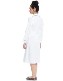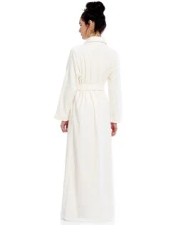 Cinderella Terry Wrap Long Belted Bathrobe With Piped Trim Ivory